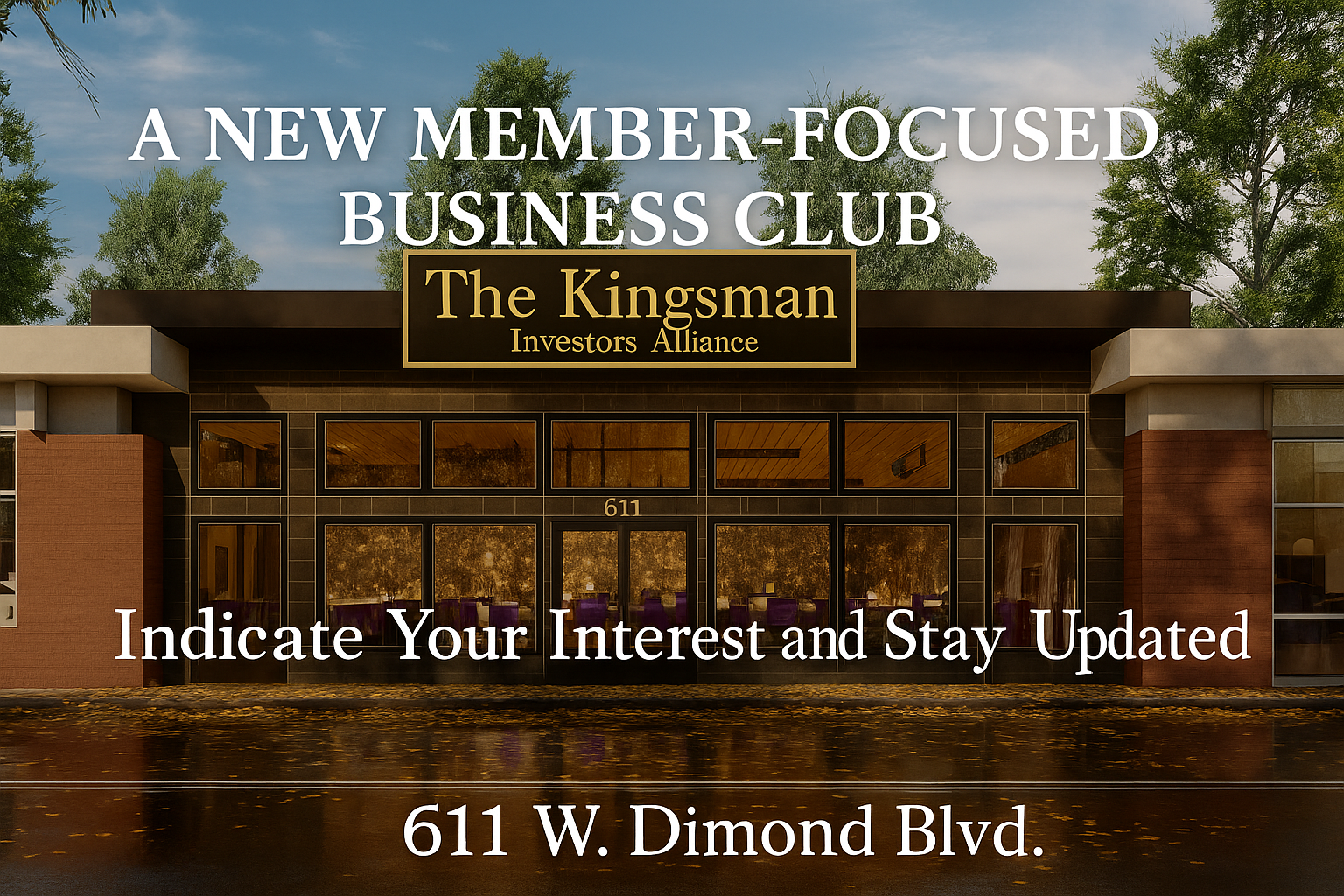 The Kingsman Alliance seeks to bridge this gap by forming a membership-driven investment collective headquartered at a restaurant and bar in Anchorage. By combining education, capital, and proprietary deal sourcing, the Company aims to give members access to curated opportunities while fostering a strong local investor community. The Ernest Hemingway–inspired space will serve as both a hospitality venue and a gathering hub for professional connections and collaboration.